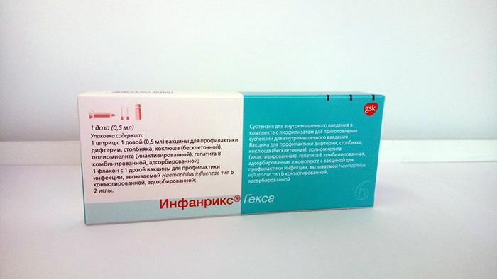 - Инфанрикс Гекса. Данная вакцина рекомендуется для профилактики коклюша, гепатита В, дифтерии, столбняка, Haemophilus influenzae B и полиомиелита. Цена одной дозы составляет около 3000 рублей.
