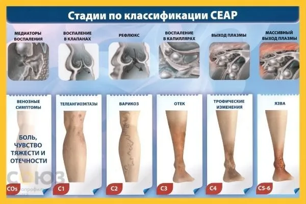 Нарушение венозного оттока при венозных заболеваниях приводит к ухудшению питания тканей ног; блокируются лимфатические сосуды, происходят отеки, возможны рожистые воспаления. Это состояние известно как хроническая венозная недостаточность. Ноги начинают отекать, причем сначала отеки исчезают при поднятии, позже они становятся постоянными. Со временем ткани нижней части ноги уплотняются, меняют цвет. Основным фактором развития язв служит венозный застой в нижних конечностях. Здесь формируется венозное «болото», внутри которого кровь практически не циркулирует. Кожа приобретает темно-коричневый оттенок и воспаляется. Даже небольшие травмы, такие как царапины, начинают воспаляться, увеличиваются и могут превратиться в хронические раны, которые затрагивают соседние ткани. В некоторых случаях, при развитии анаэробной инфекции, язвы могут быть осложнены газовой гангреной.