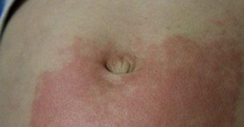 - трение кожи в районе пупка одеждой или ремнем, использование синтетических тканей;