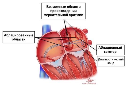 Метод хирургического вмешательства при различных формах нарушений сердечного ритма с использованием катетеров играет ключевую роль. Главная концепция этой техники заключается в разрушении участка, ответственного за аритмию, с помощью радиочастотного излучения (существуют также методы ультразвуковой, лазерной и криоабляции).