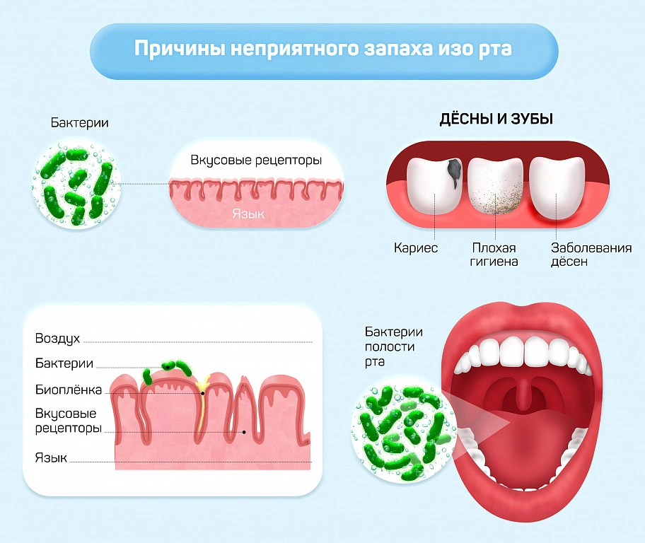 Основными причинами возникновения галитоза могут быть: