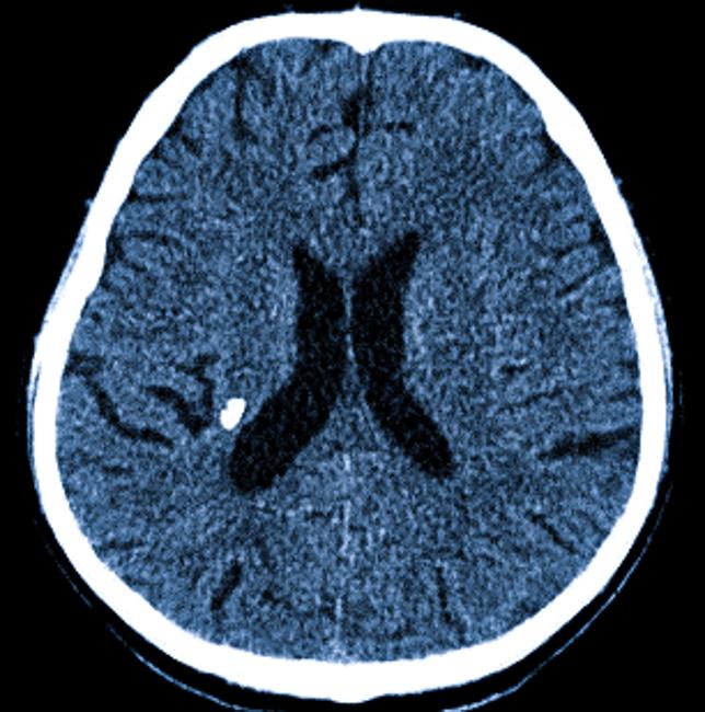 Компьютерная томография демонстрирует гиперденсивные очаги (локусы повышенной плотности), связанные с симметричным двусторонним отложением кальция в: