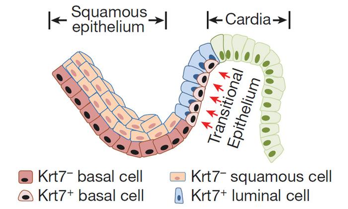 Большой коллектив ученых из Медицинского центра Колумбийского университета и других научных учреждений США и Китая провел сравнительный анализ экспрессии генов, характерных для эпителия. Они показали, что у мышей пограничный эпителий, состоящий из базальных и люминальных (обращенных в просвет пищевода) клеток, характеризуется различной экспрессией в этих клетках трех маркеров.