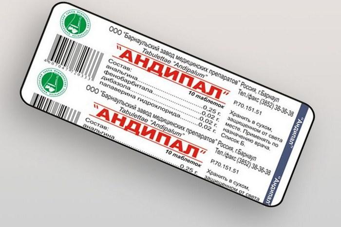 - Андипал – комбинированный препарат для снятия головной боли и спазмов, содержащий аналгетики и противоспазмодики.