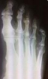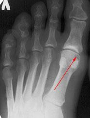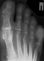 Для диагностики обязательно необходимо провести рентгенографию стопы. Этот метод позволяет выявить костные изменения, разрастания, пограничные дефекты суставных поверхностей, уменьшение суставных щелей, субхондральный склероз костной ткани и наличия кистовидных образований, что дает возможность провести дифференциальную диагностику.